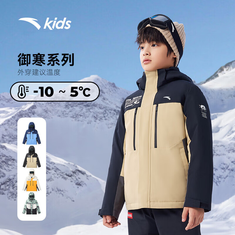 安踏儿童羽绒服男大童冬季加绒保暖热返滑雪眼镜款羽绒外套A352346906价格:428.00元!