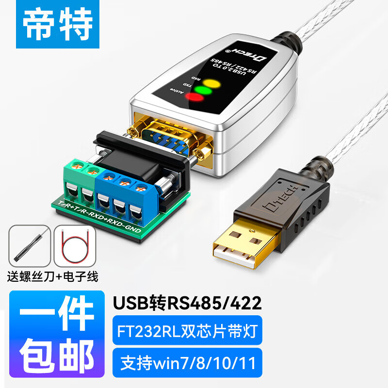 帝特USB转RS485/RS422转换器 rs485转usb串口转换线COM口模块通讯转接线 1.2米DT-5019价格:109.00元!