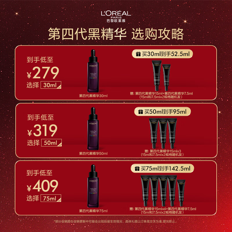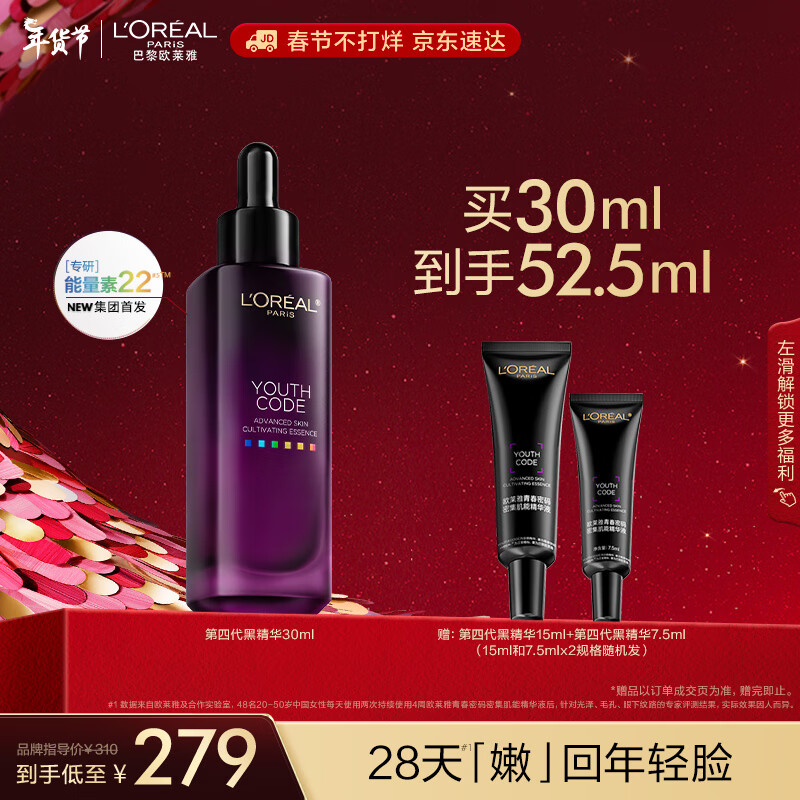 欧莱雅黑精华4.0 30ml 紧致修护抗皱保湿精华液护肤品情人节新年礼物女价格:279.00元!