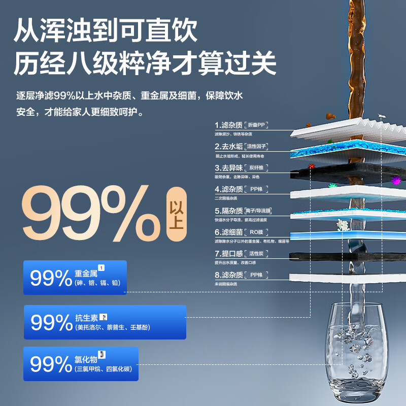滤芯:活性炭,PP棉,复合滤芯,RO反渗透膜