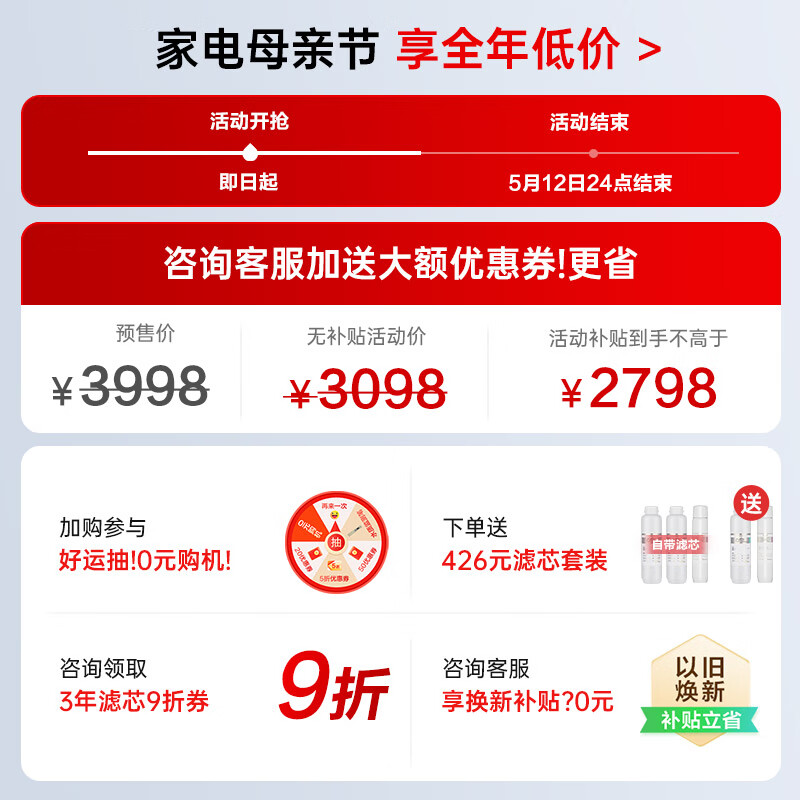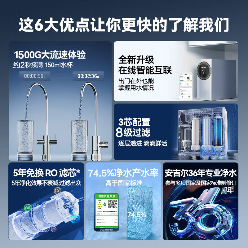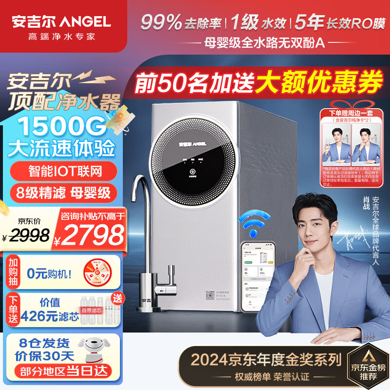 安吉尔 肖战代言 净水器家用1500G流速体验 智能IOT联网净水机 5年专利RO膜直饮纯水机 大通量E-Tech3800 【顶配8级精滤】24年母婴级力荐款价格:2998.00元!