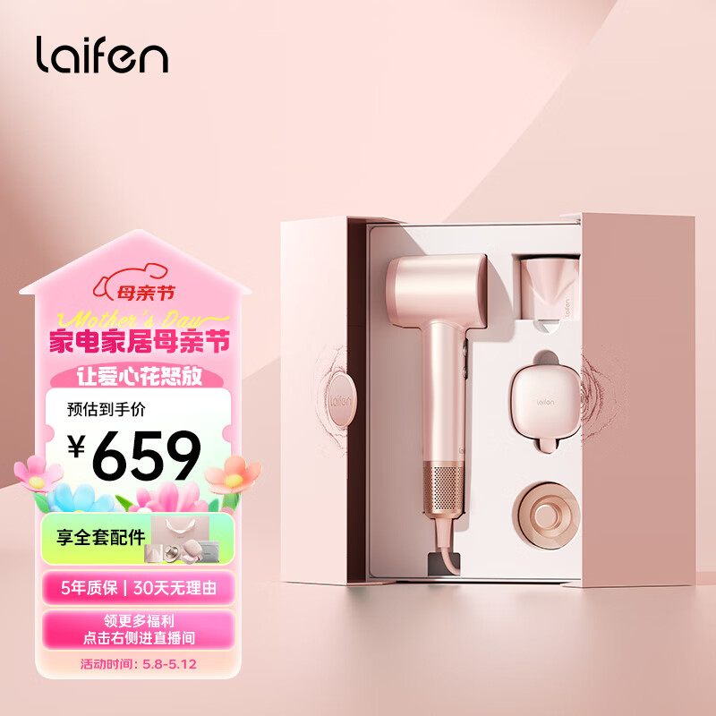 徕芬Laifen家用电吹风 大功率负离子高速吹风机 莱芬低噪音不伤发速干吹风筒 礼赠情人节母亲节礼物 粉金礼盒价格:1200.00元!