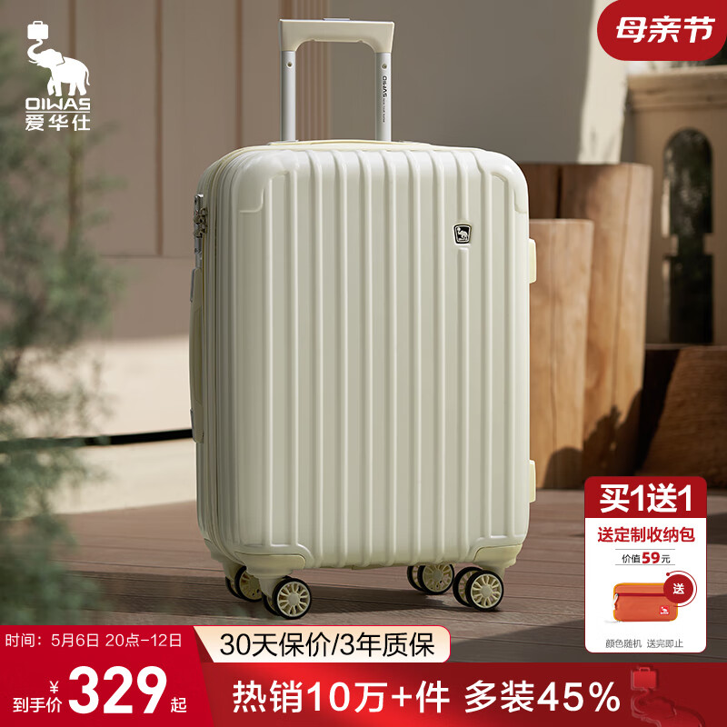 爱华仕行李箱可登机20英寸女小型拉杆箱男旅行箱可扩展密码箱皮箱珍珠白价格:329.00元!