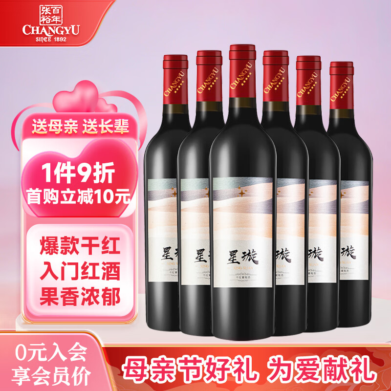 张裕(CHANGYU)星璇赤霞珠干红葡萄酒 750ml*6瓶整箱装 国产红酒价格:238.00元!