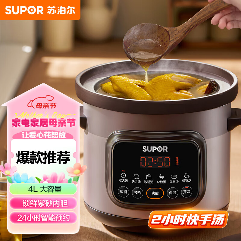 苏泊尔(SUPOR)电炖锅 电砂锅 电炖盅 炖汤锅煲汤锅 紫砂锅 燕窝炖盅 煮粥神器 电汤锅熬粥电煮锅 4L DG40YC872价格:178.00元!