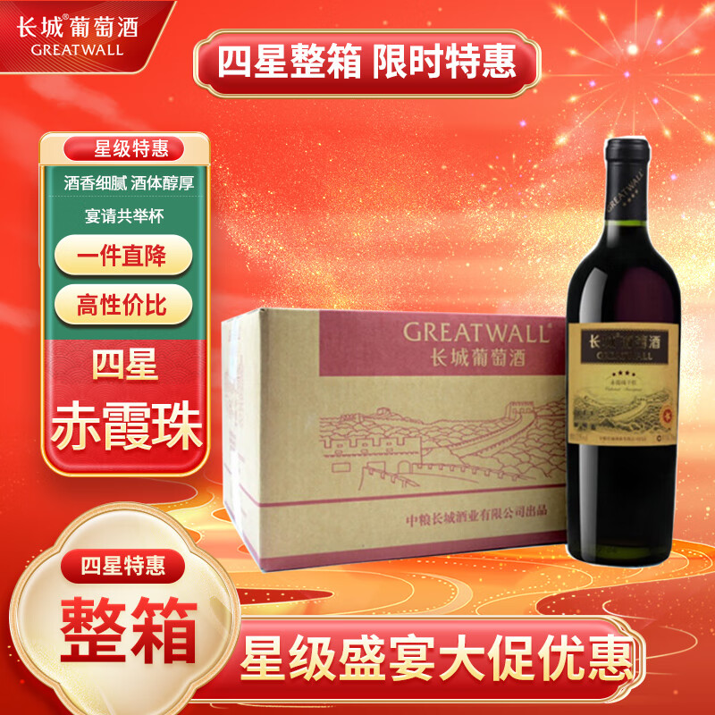 长城 四星赤霞珠干红葡萄酒 750ml*6瓶 整箱装价格:660.00元!