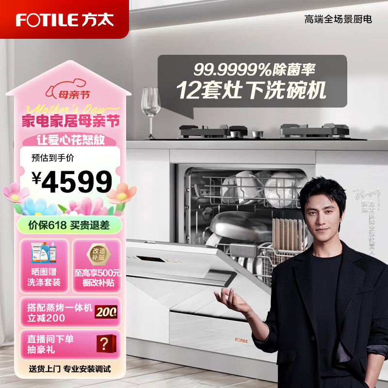 方太(FOTILE)洗碗机嵌入式家用 高能气泡洗 12套大容量 灶下洗碗机 一级水效 30min超快洗02-N1价格:4399.00元!