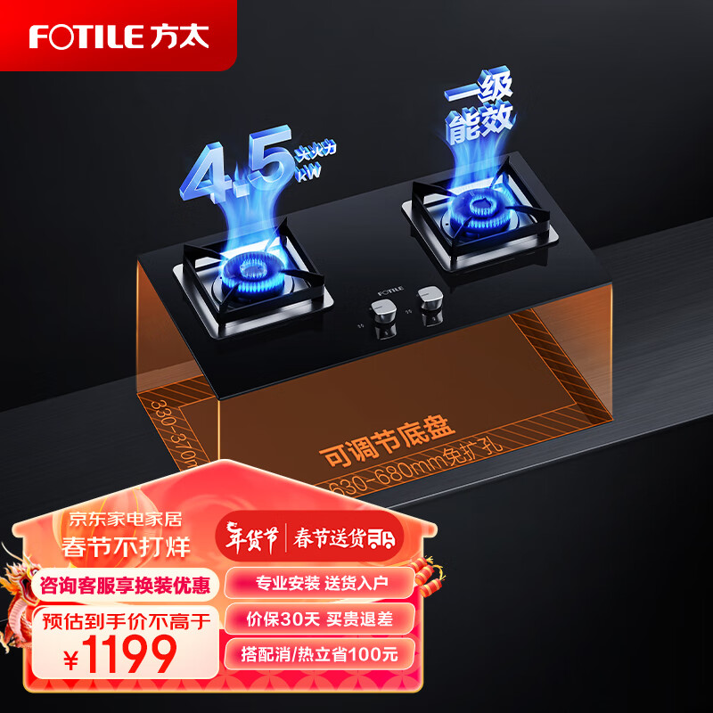 方太灶具 家用嵌入式燃气灶(天然气)4.5kW大火力 换装不改孔 猛火灶02-HT8BE.S价格:1199.00元!