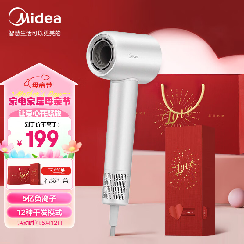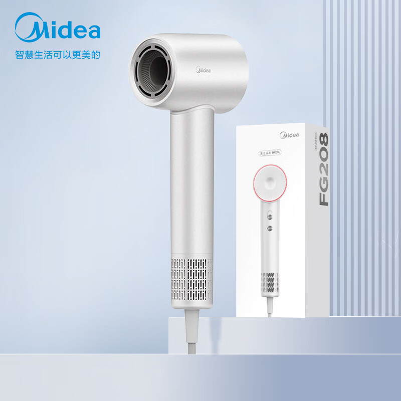 美的(Midea)高速吹风机家用吹风筒/大功率/负离子护发/大风力速干/低噪/送礼盒装电吹风/520礼物FG208-流光白价格:199.00元!