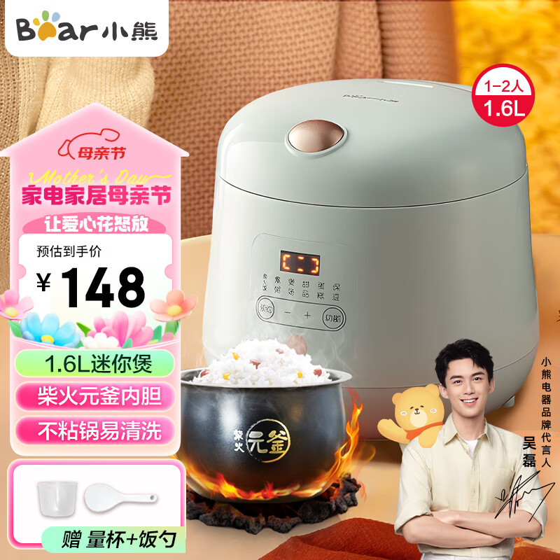 小熊(Bear) 迷你电饭煲 小型家用电饭煲1-2人电饭锅1.6L多功能智能预约煲汤煮粥还原柴火饭不粘元釜内胆 迷你 小饭煲 1.6L价格:148.00元!