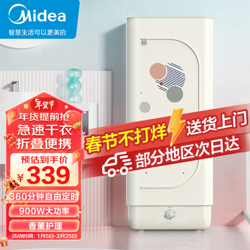 美的(Midea)烘干机家用 干衣机布罩类小型烘衣机衣服烘干衣柜便携可折叠护理机干衣机价格:339.00元!
