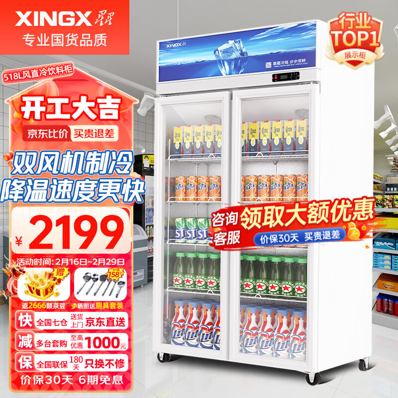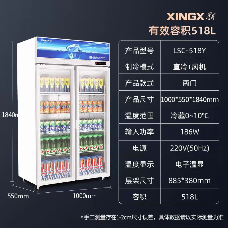 星星(XINGX)展示柜冷藏保鲜柜双开门立式冰柜饮料柜 商用冰箱风直冷超市便利店水果啤酒冷柜 518升 双风机循环制冷 LSC-518Y价格:2199.00元!