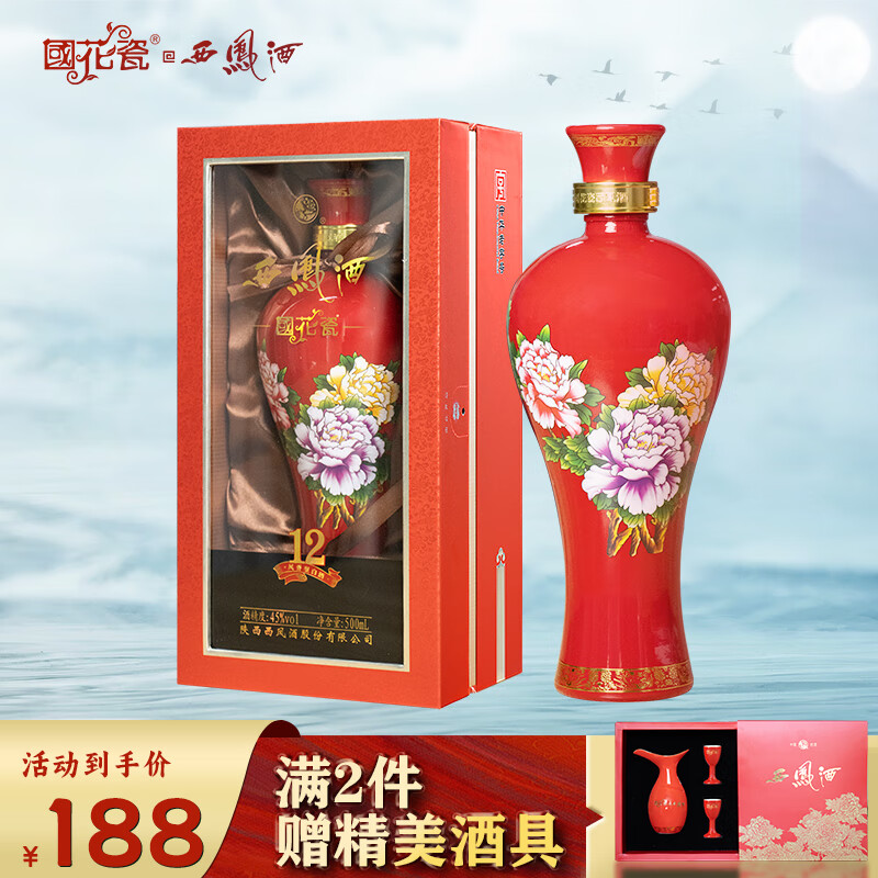 西凤酒 国花瓷12年 45度 500ml 单瓶装 凤香型白酒【喜宴酒】价格:258.00元!