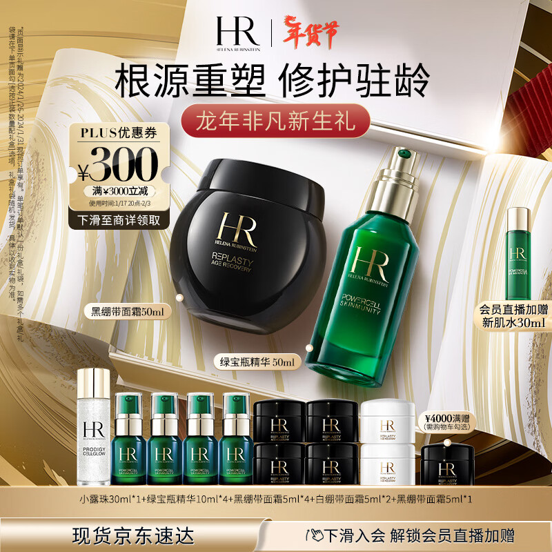赫莲娜HR黑绷带面霜50ml+绿宝瓶精华50ml护肤品套装化妆品生日圣诞礼物价格:5630.00元!
