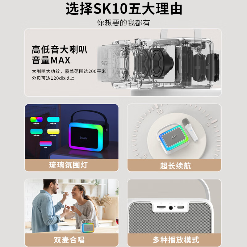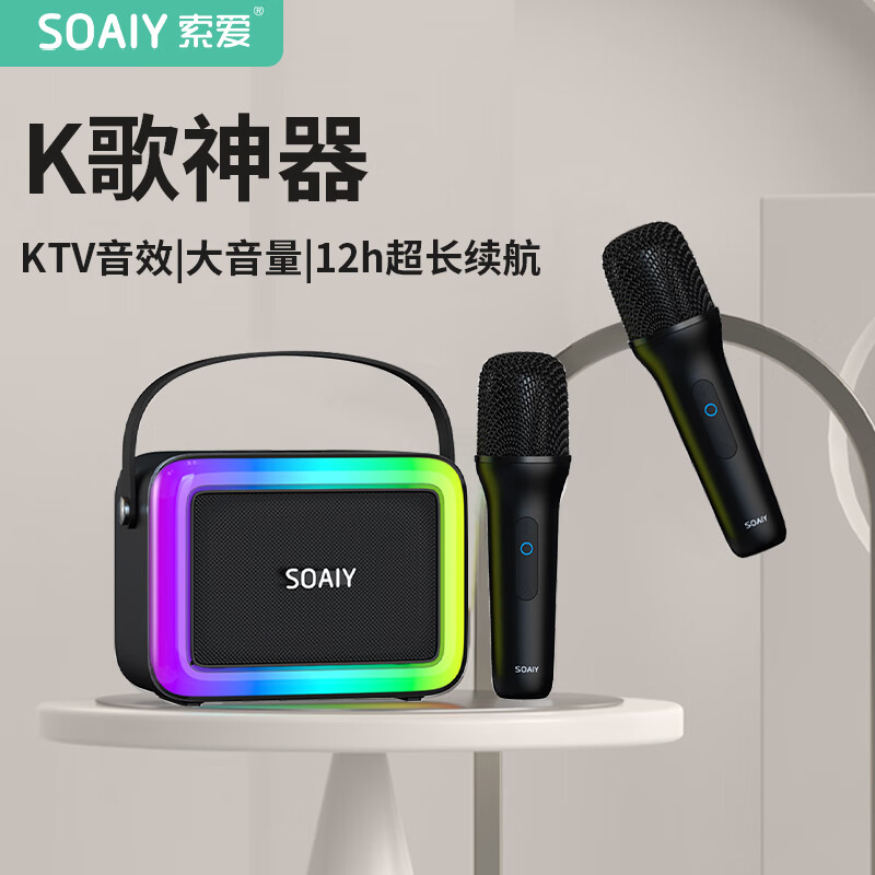 索爱(soaiy)SK10家庭KTV音响手机电视K歌点歌机话筒蓝牙音箱一体机儿童家用户外麦克风套装 双麦版 暗夜黑价格:299.00元!