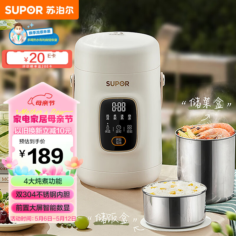 苏泊尔(SUPOR)电水壶 便携式烧水壶家用旅行户外大容量多功能电热水壶 双层保温壶电热水杯 养生 SW-14T01A价格:189.00元!