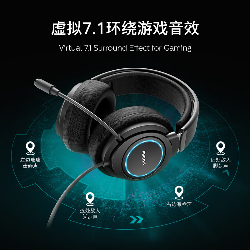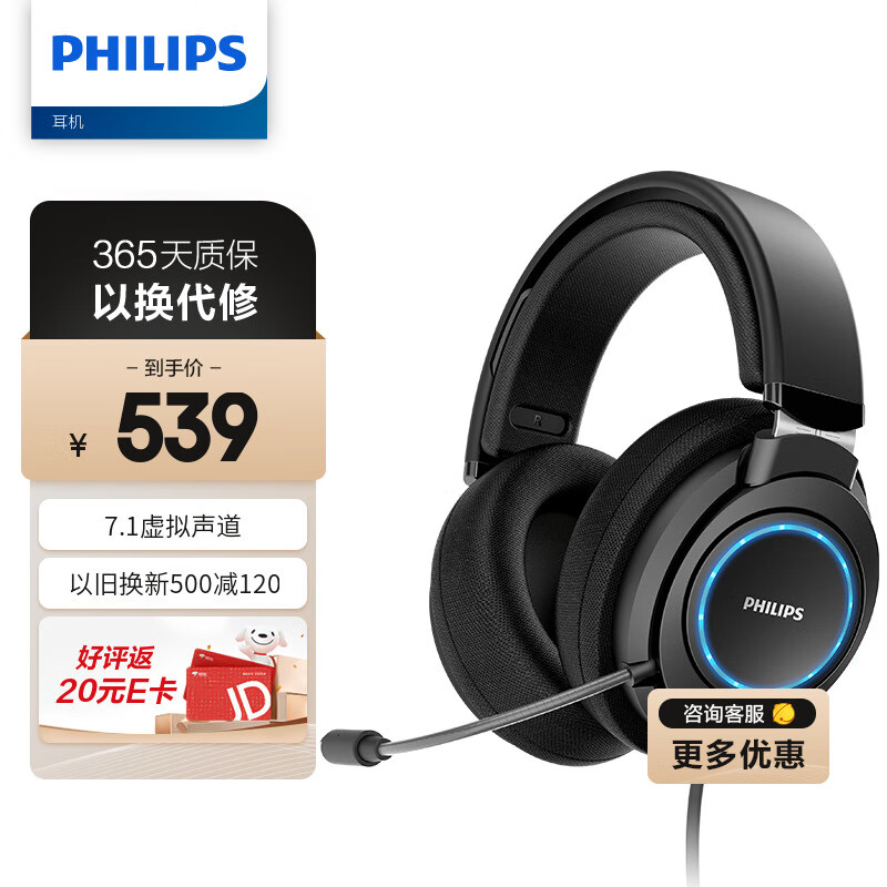 飞利浦(PHILIPS)SHP9500游戏版G6105 HiFi级游戏耳机 7.1虚拟环绕 炫彩呼吸灯 头戴式电脑电竞线控带麦耳机价格:539.00元!