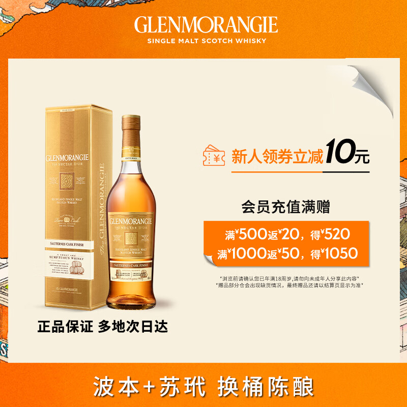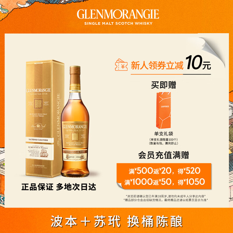 格兰杰(Glenmorangie)洋酒 苏玳酒桶 苏格兰高地单一麦芽威士忌700ml年货节礼盒价格:661.00元!