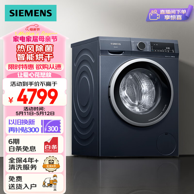 西门子(SIEMENS)10公斤滚筒洗衣机全自动 除菌洗烘一体机 智能烘干 热风清新 均匀烘干 湖蕴蓝 X14W价格:5299.00元!