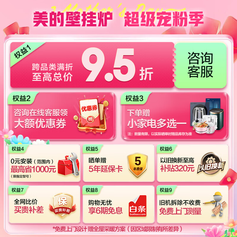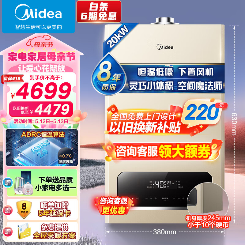 美的(Midea)双变频省气 一级低噪 舒适恒温燃气壁挂炉 天然气供暖 采暖地暖 家用锅炉省气 下置风机L1GB20-R05价格:4999.00元!