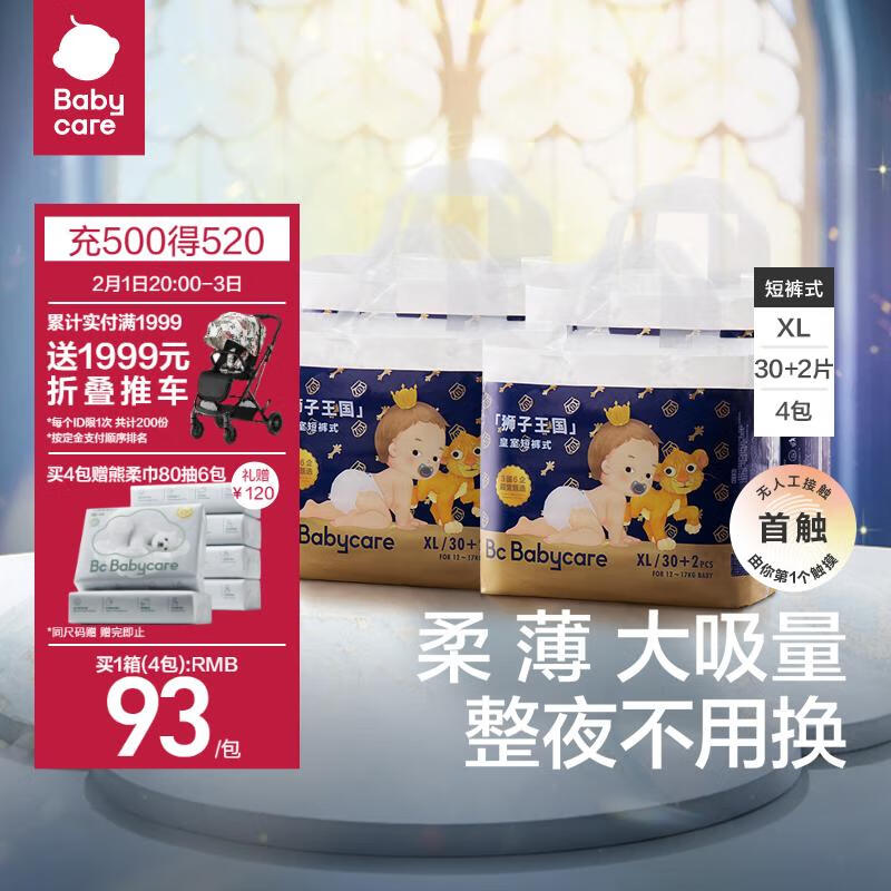 babycare皇冠LaLa裤皇室狮子王国拉拉裤婴儿尿不湿箱装XL30+2*4包 12-17kg价格:632.00元!