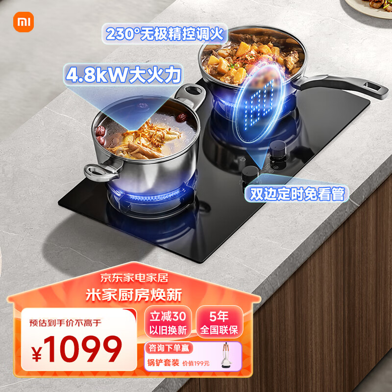 米家小米燃气灶S1煤气灶具双灶家用嵌入式 液化气4.8kW猛火 智能双边定时 底座可调节JZY-MJ04CY价格:1099.00元!