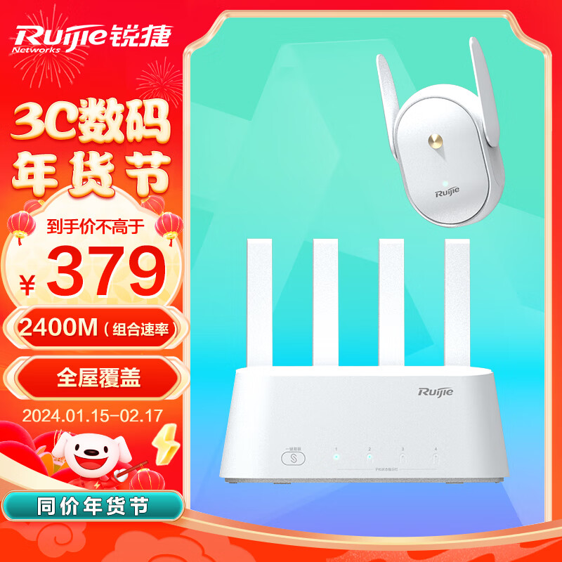 锐捷蜂鸟H20M(1+1)子母路由器千兆家用 大户型路由 全屋wifi套装 即插即用 mesh组网价格:399.00元!