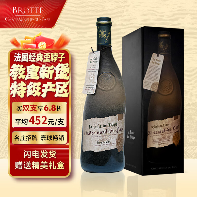 BROTTE歪脖子红酒教皇新堡特级园法国进口干红葡萄酒高档送礼盒装礼品价格:665.00元!