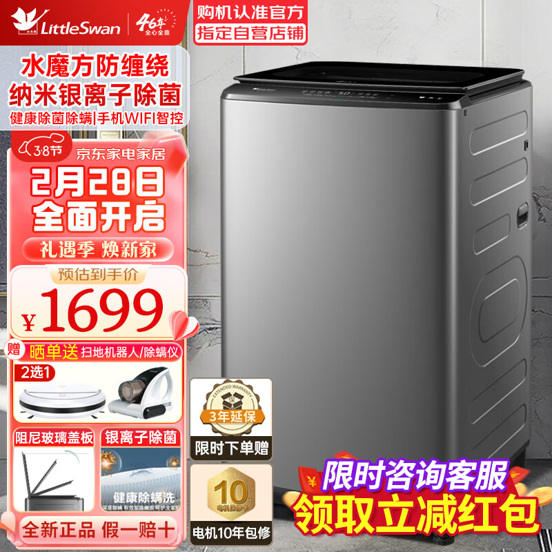 小天鹅(LittleSwan)洗衣机全自动10公斤大容量家 用水魔方防缠绕系列波轮 智能家电 纳米银离子除菌 TB100VT85WACLY价格:1669.00元!