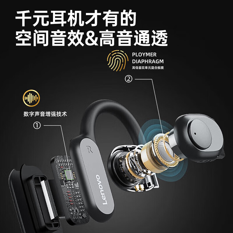 联想(Lenovo)【高级舒适耳机】蓝牙耳机无线挂耳式 不入耳开放式夹耳骨传导概念运动跑步降噪游戏商务 lp76黑价格:199.00元!