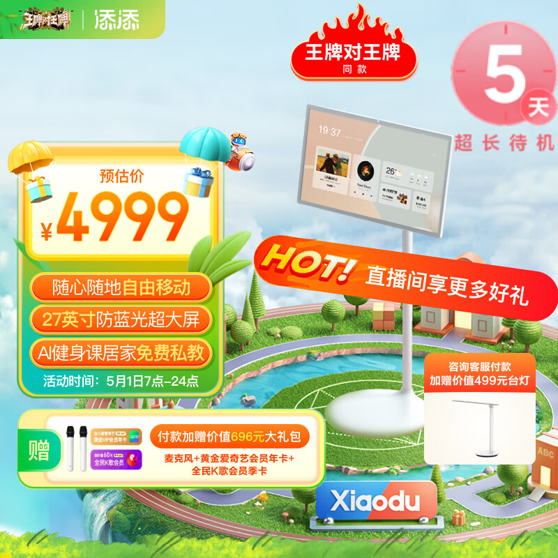 添添小度闺蜜机长续航版 智能平板 电视音响移动随心屏27英寸大屏触控显示器 追剧唱歌健身办公礼物价格:4999.00元!