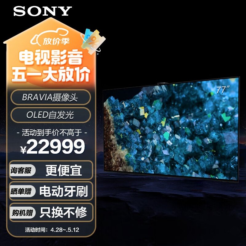 索尼(SONY)XR-77A80EL 77英寸4K HDR OLED屏幕发声 XR认知芯片大屏屏智能电视机 (A80EK升级款)价格:22999.00元!