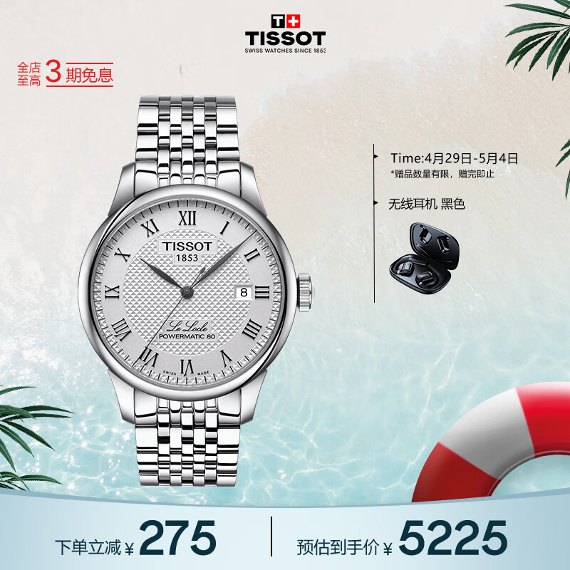 天梭(TISSOT)瑞士手表 力洛克系列腕表 钢带机械男表 T006.407.11.033.00价格:5500.00元!