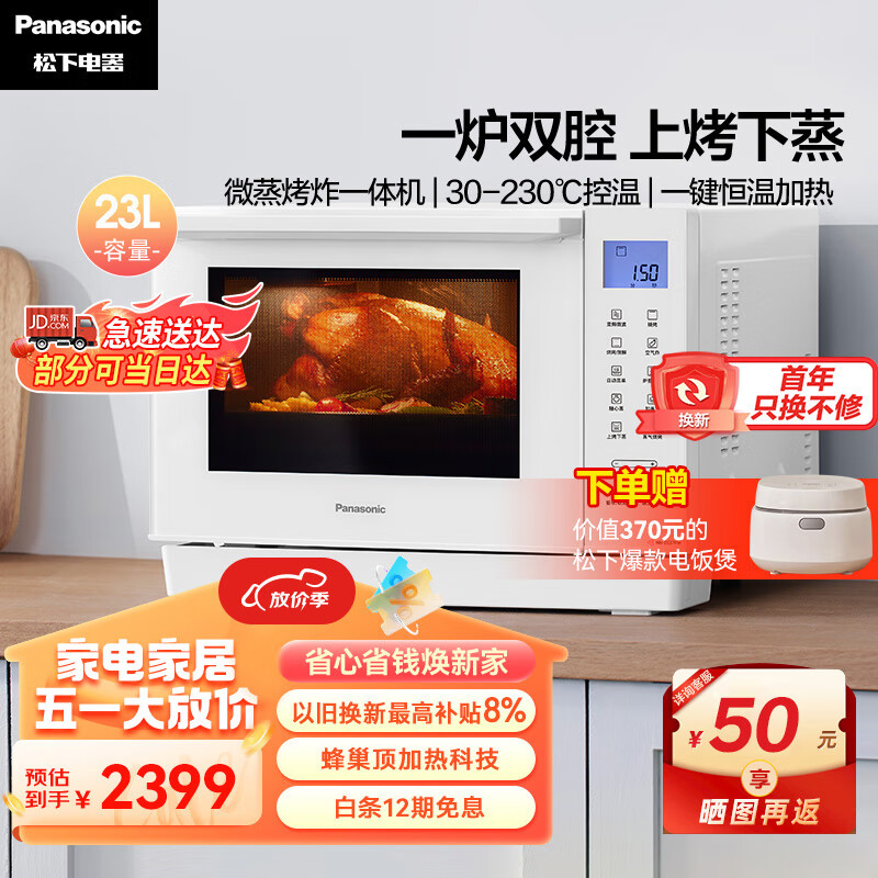 松下(Panasonic)微蒸烤炸一体机 23L家用台式变频微蒸烤 微波炉 烤箱 空气炸 蒸箱 万食炉 上烤下蒸 DS37价格:2299.00元!