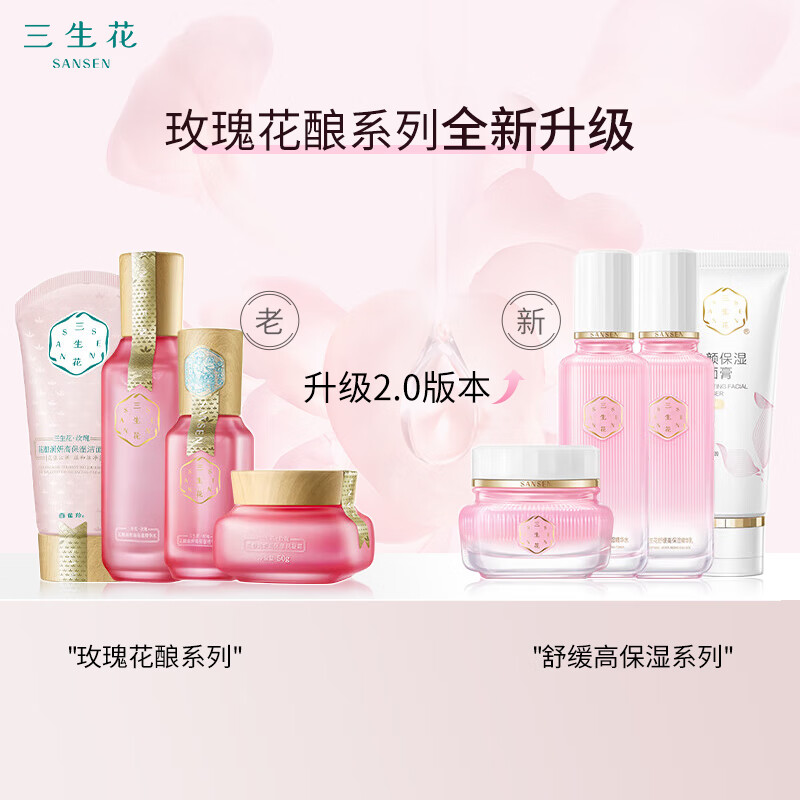 三生花百雀羚出品舒缓高保湿4件套装(洁水乳霜 )补水维稳提亮新年礼物价格:438.00元!