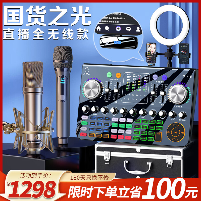 好牧人声卡直播设备全套装无线麦克风蓝牙手机话筒唱歌吧K歌娱乐快手抖音主播变声器户外降噪电脑麦克风价格:1398.00元!