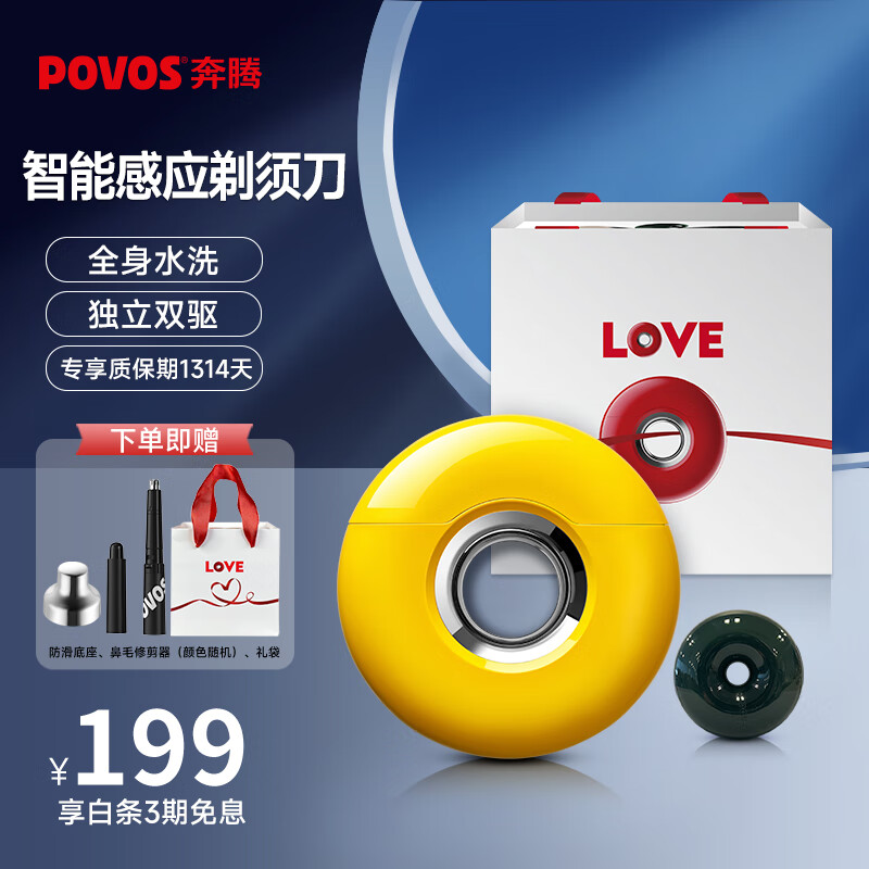 奔腾(POVOS)甜甜圈电动剃须刀 小巧便携刮胡须刀须刨智能T000暖心黄 生日纪念日礼物送男友送老公送男生价格:219.00元!