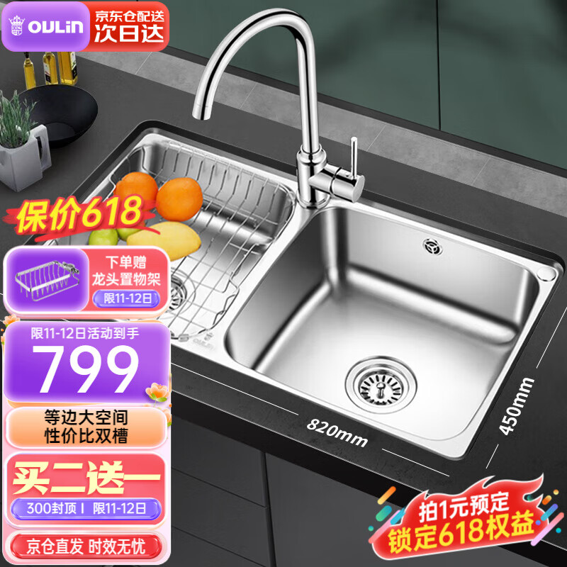 欧琳厨房水槽水盆不锈钢洗菜盆洗碗池大双槽洗菜池OLH9813b价格:829.00元!