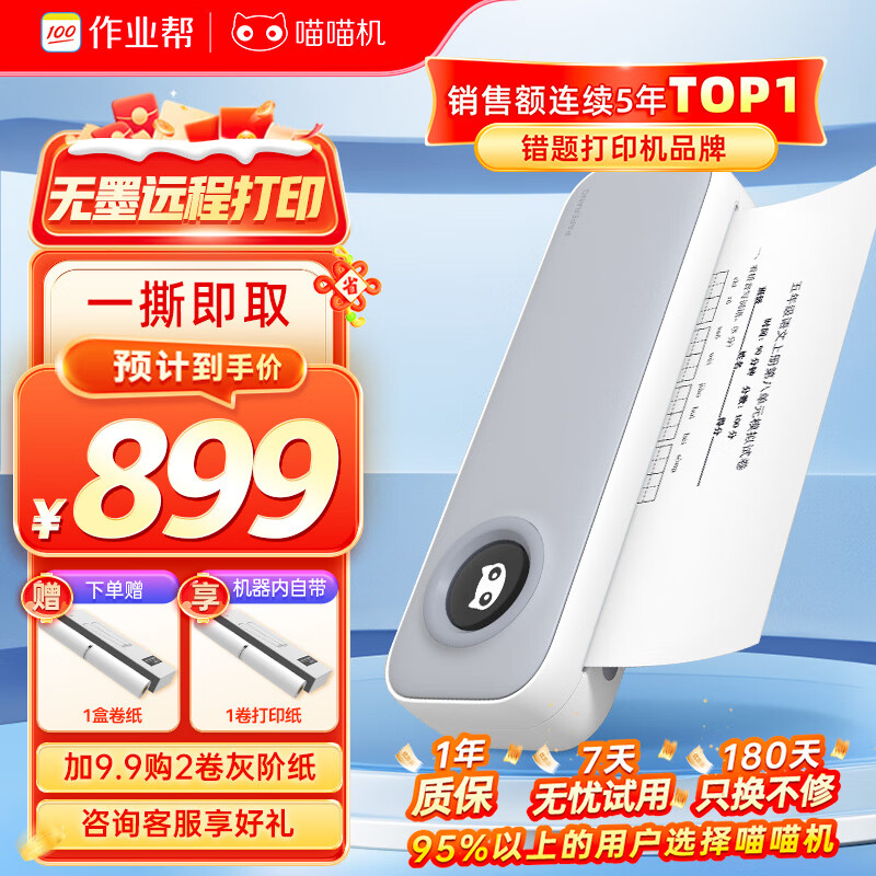 喵喵机A4高清错题学习打印机错题整理神器无墨远程打印小型便携桌面热敏打印机家用 F2S尊享版价格:899.00元!
