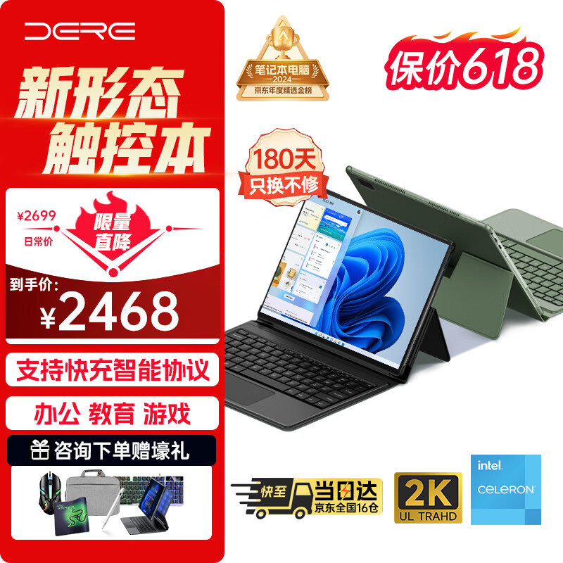 戴睿(dere)全新升级金属笔记本电脑平板二合一触控摸轻薄便携商务办公学生学习教育设计游戏 16G+512G 落岩灰价格:2468.00元!