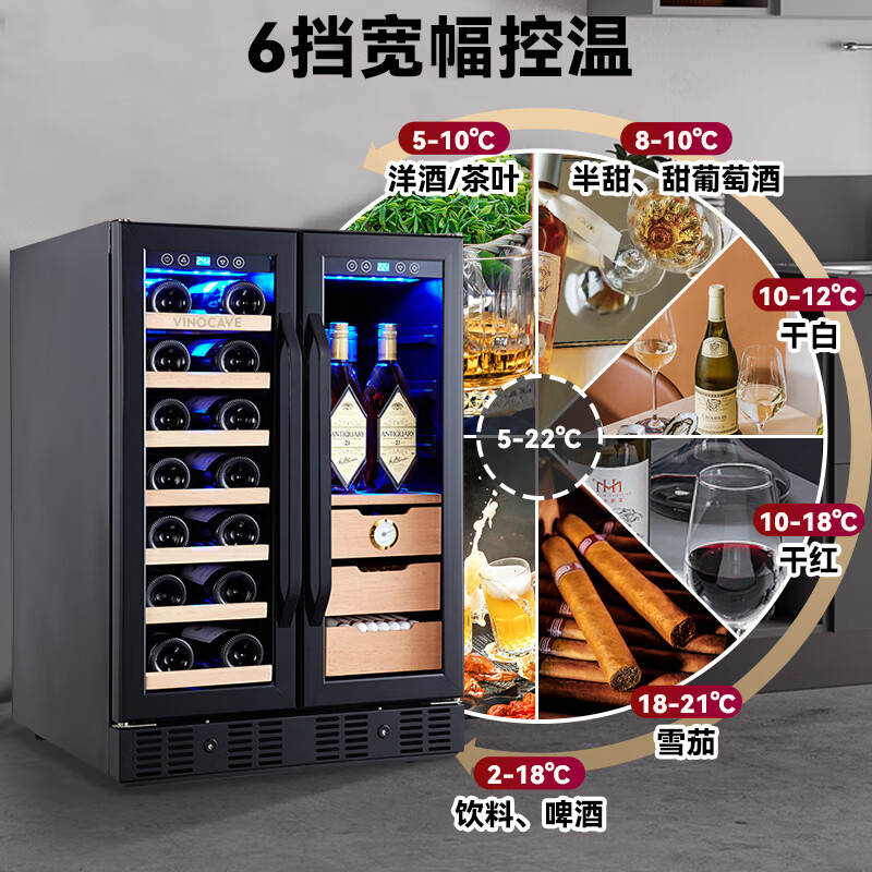 维诺卡夫(Vinocave)酒柜 风冷恒温雪茄茶叶红酒柜 嵌入式双开门多功能时尚葡萄酒柜 CWC-150CJP价格:3580.00元!