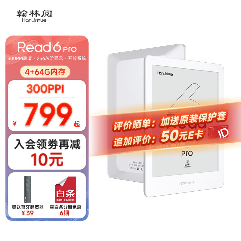 翰林阅Read6 Pro 4+64G晨幕白 电子书阅读器墨水屏6英寸电子纸300PPI护眼电纸书阅览器256灰阶看书水墨屏价格:799.00元!