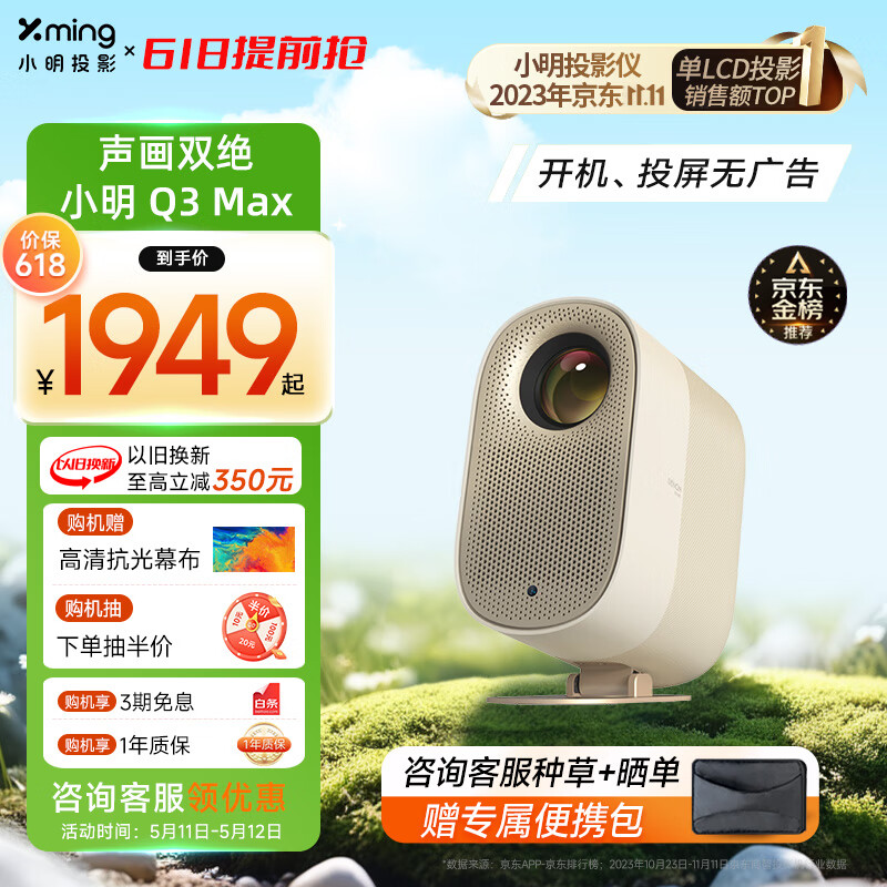 小明 Q3 MAX 投影仪家用 超高清家用卧室投影机 智能家庭影院(600 CVIA流明 运动补偿 天龙音响联名)价格:1999.00元!