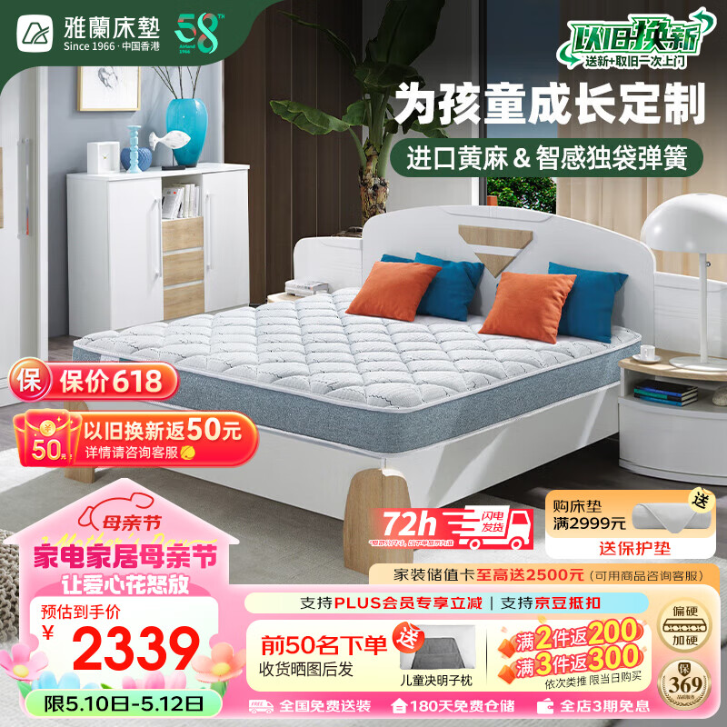 雅兰抑菌面料进口乳胶黄麻床垫 独袋弹簧er童床垫 蘭精灵 1.5*2米价格:3839.00元!