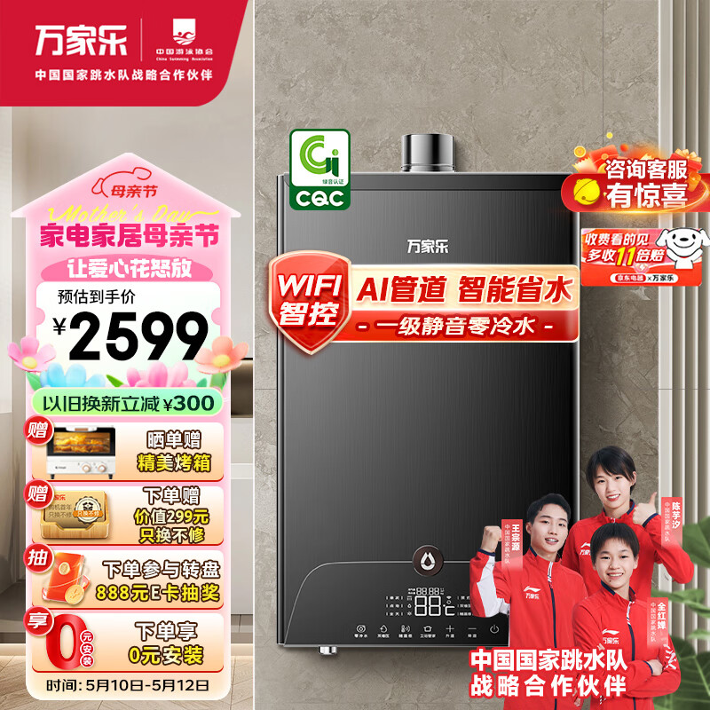 万家乐16升家用燃气热水器天然气一级静音恒温增压零冷水wifi智控防冻JSQ30-16RL10价格:2599.00元!