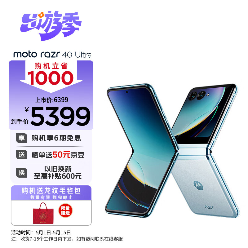 摩托罗拉 moto razr 40 Ultra 掌心巨幕 外屏海量应用 骁龙8+ 5G折叠屏旗舰手机 12GB+512GB 冰晶蓝价格:5699.00元!