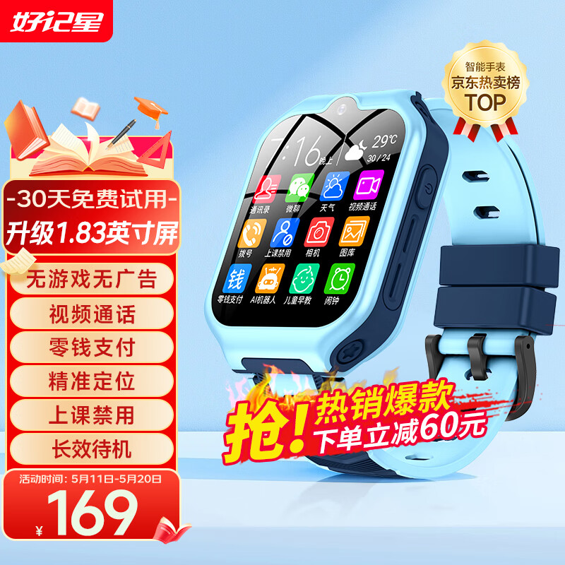 好记星【无游戏】智能儿童电话手表4G通小学生移动联通电信版防摔游泳级防水wifi精准定位学生手表 旗舰版蓝【精准定位+零钱支付+长效待机+升级大屏】价格:169.00元!