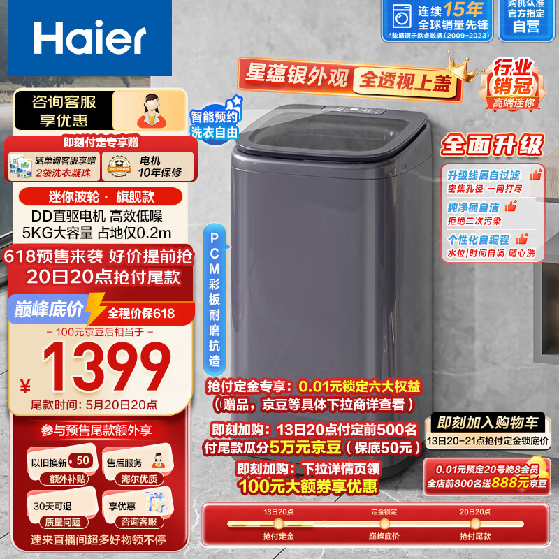 海尔(Haier)婴儿洗衣机 波轮迷你洗衣机全自动 宝宝洗衣机 内衣洗衣机 5公斤 DD直驱变频 天沐水洗XQB50-B278价格:1599.00元!