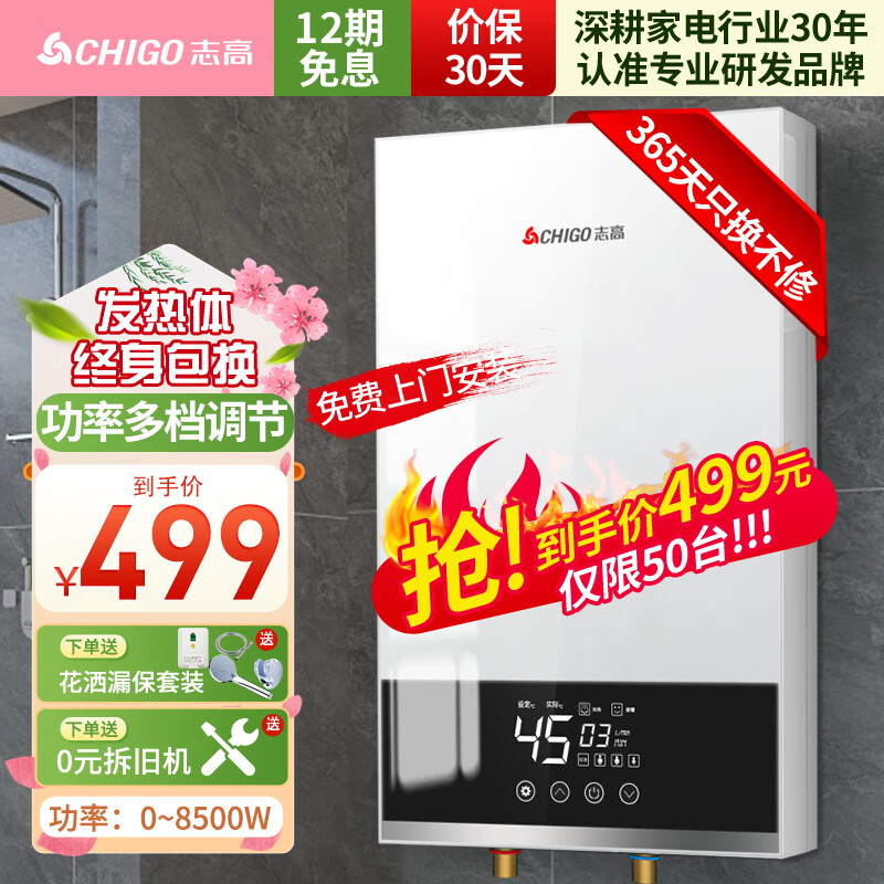志高(CHIGO)即热式电热水器超薄8500W智能变频恒温速热小厨宝省电家用出租屋洗澡免储水功率可调KBR-W5D价格:559.00元!