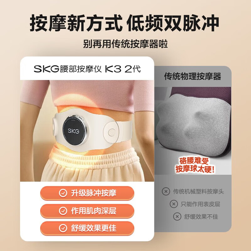 SKG腰部按摩器腰带腰椎智能腹部红光热灸热敷便携按摩仪 实用生日礼物送父母妈妈男女友老婆礼品 【升级二代】超薄隐形价格:599.00元!